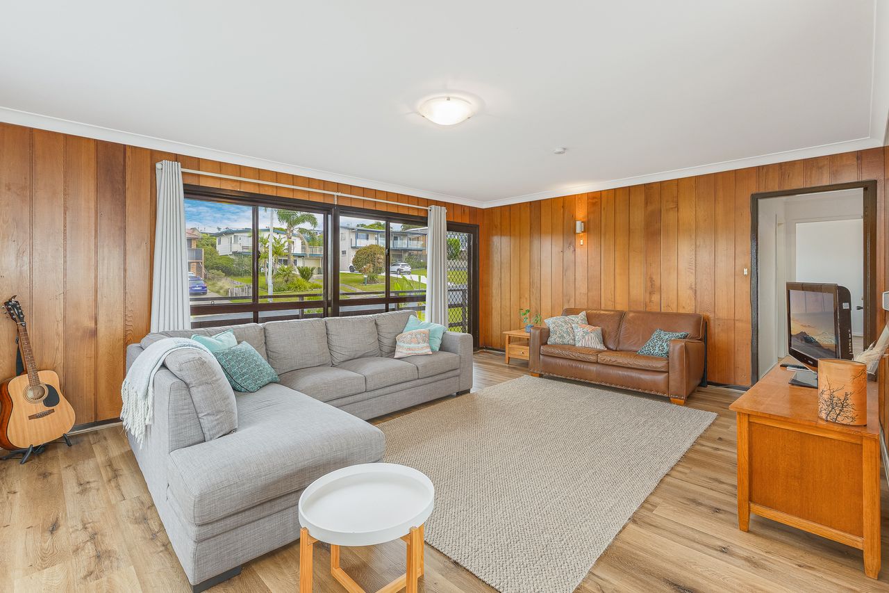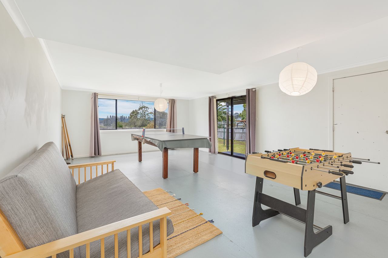 Offering five bedrooms, including a main with ensuite, plus an additional bathroom upstairs and a convenient shower downstairs, this home is ideal for families or groups. Enjoy the spacious, light-filled living room on the upper level, or head downstairs to the games room—perfect for both kids and adults with direct access to the backyard.