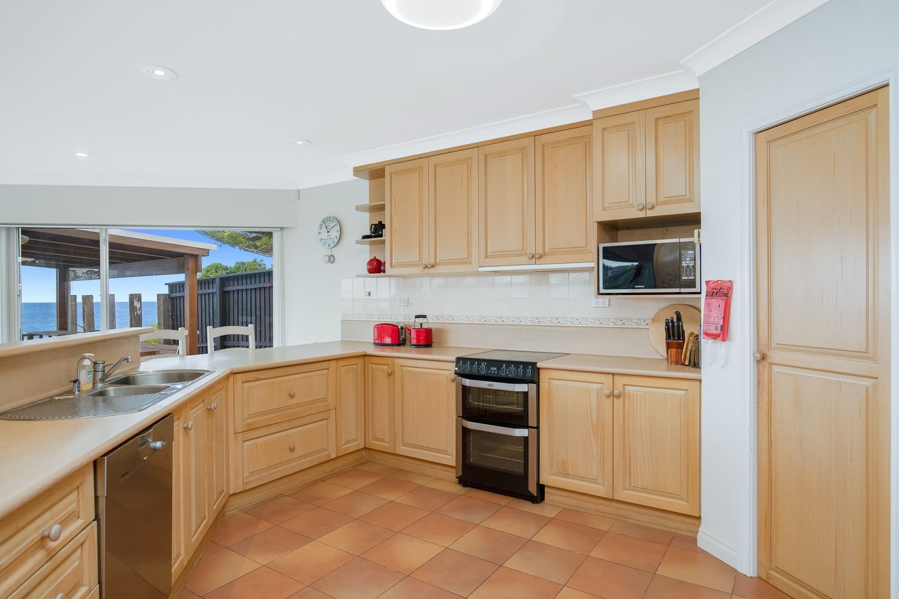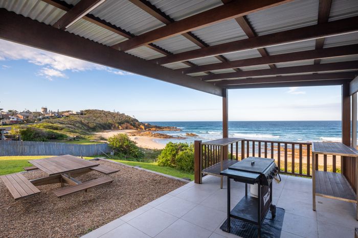 4 With direct access to Beares Beach from the back gate (non patrolled) this spacious property offers a tranquil and comfortable retreat for any holiday maker. Single level and enjoying ocean views from the living areas and main bedroom, this large home is perfect for extended family gatherings. Featuring open plan living areas with high ceilings & a well-equipped kitchen with large dining table, perfect to bring family & friends together.