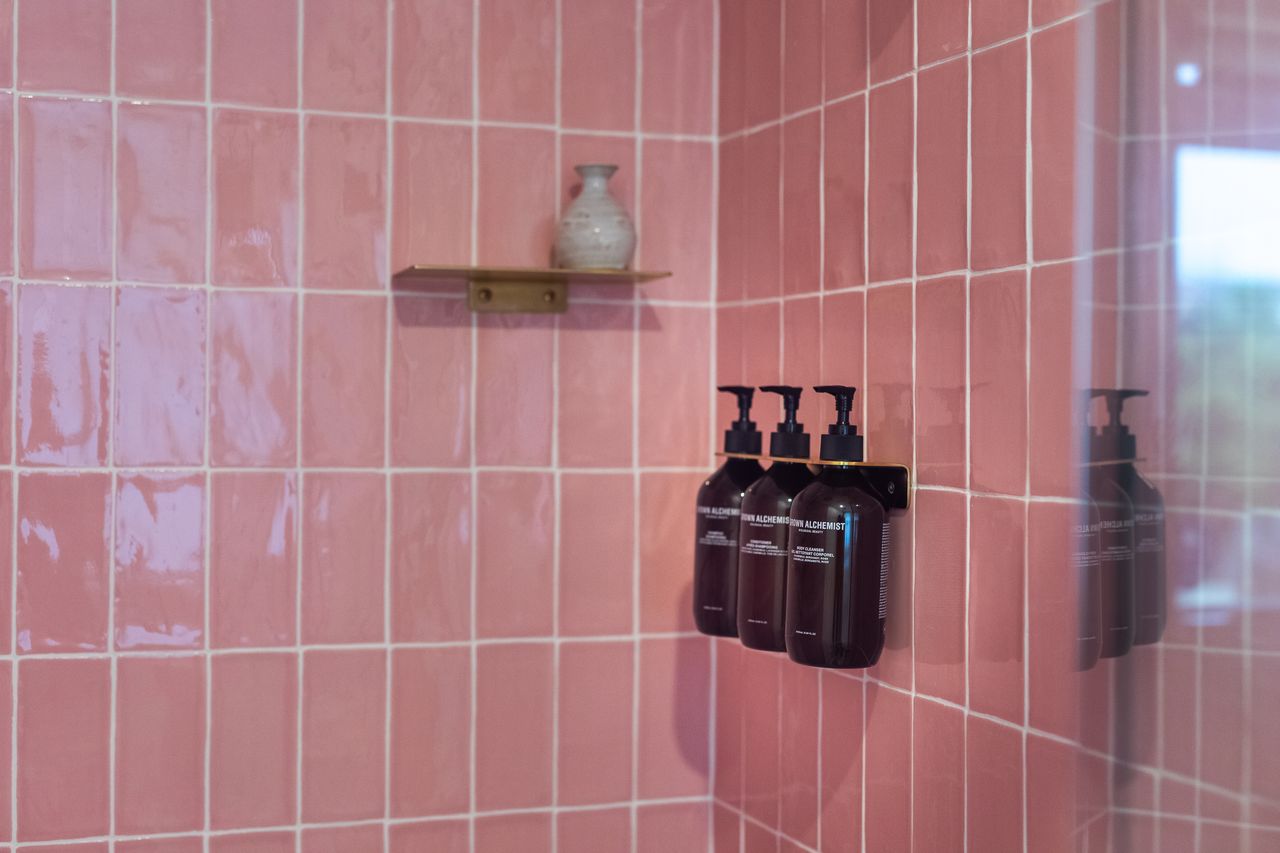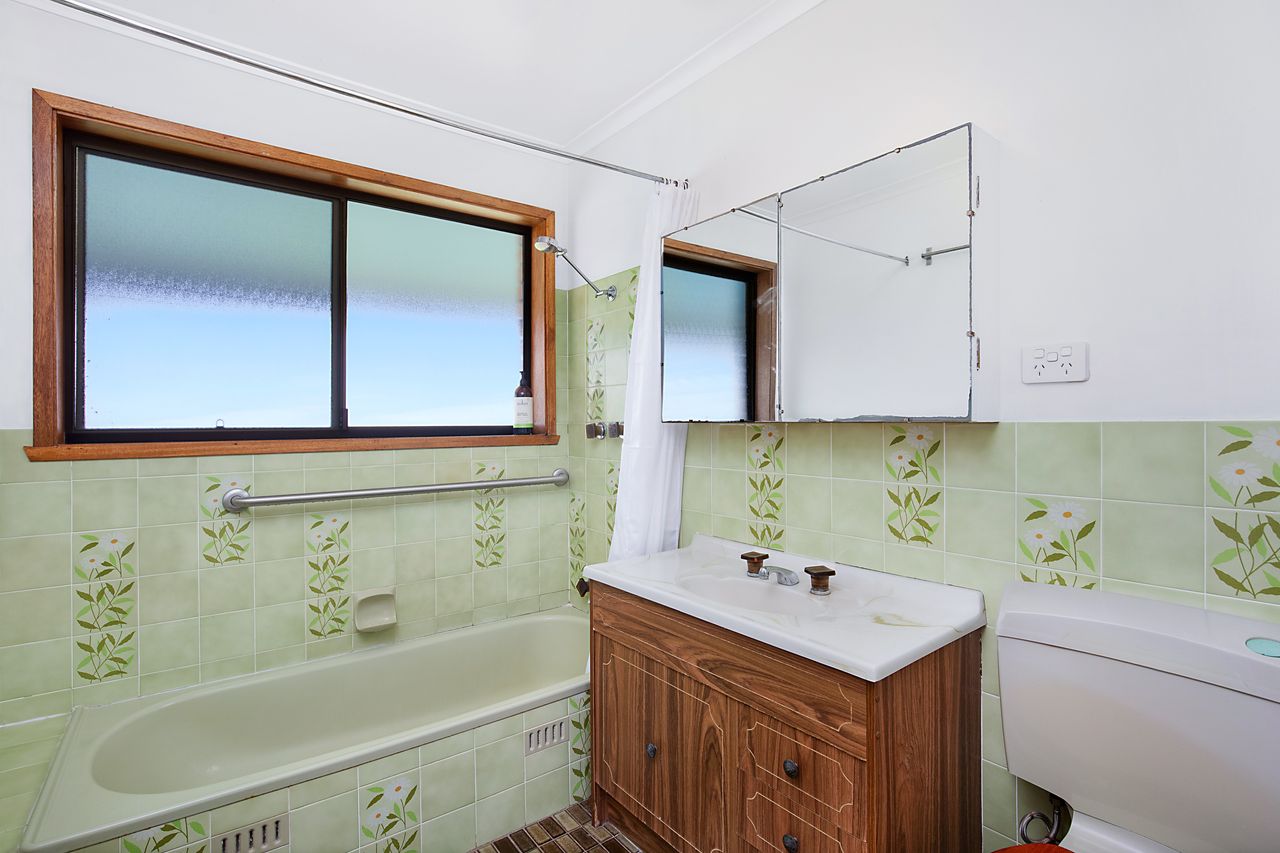The retro upstairs bathroom is a reminder of the charm of the past and almost on trend once again.