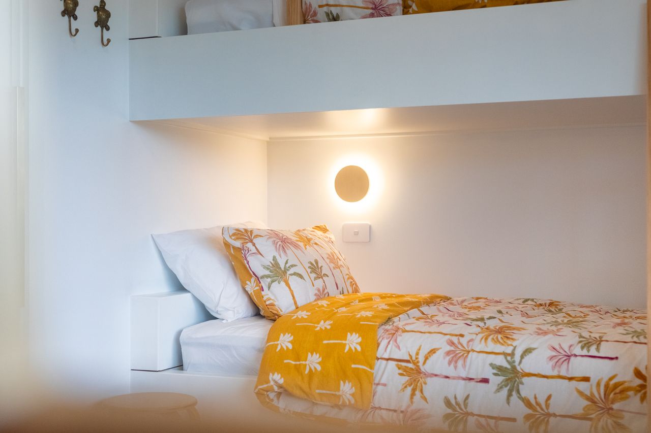 Bedroom 3: 4 single bunk beds (2 up, 2 down).