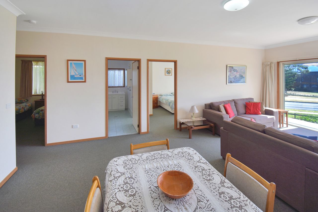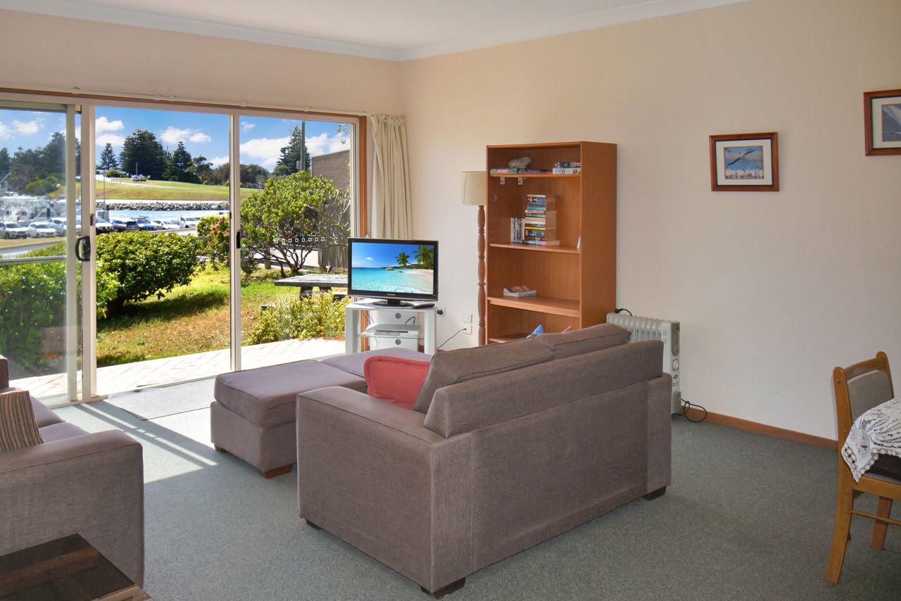2 Located directly across the road from Fishermen's Wharf this lovely two-bedroom duplex has a great outlook with views straight up the harbour. It is the perfect spot for a relaxing holiday and close to all the delights of Bermagui's beaches, harbour, fishing, restaurants and cafes- an easy flat walk of 650 metres to main street attractions. If you're bringing your fishing gear rear lane access provides off street parking for your small boat.
