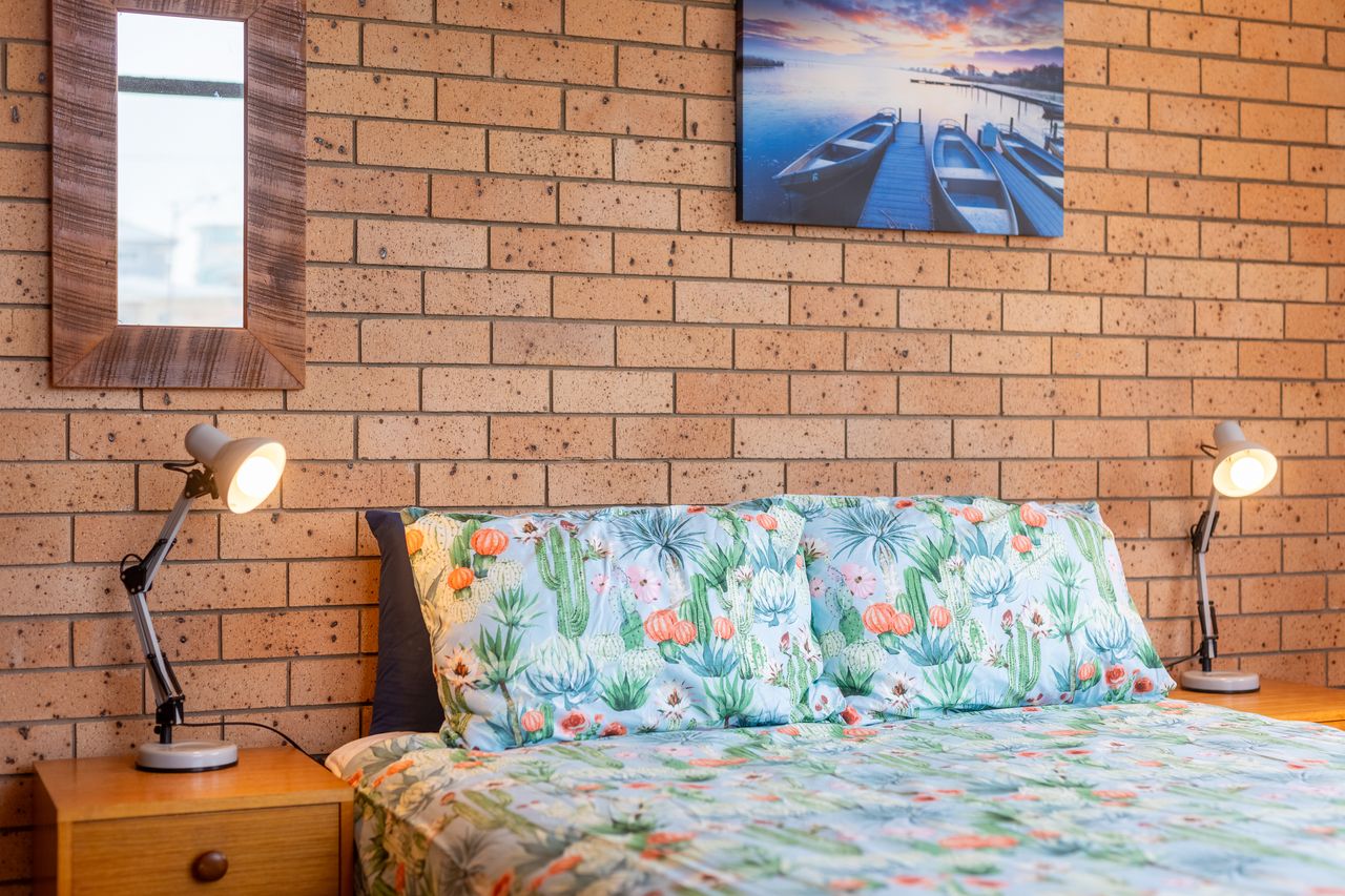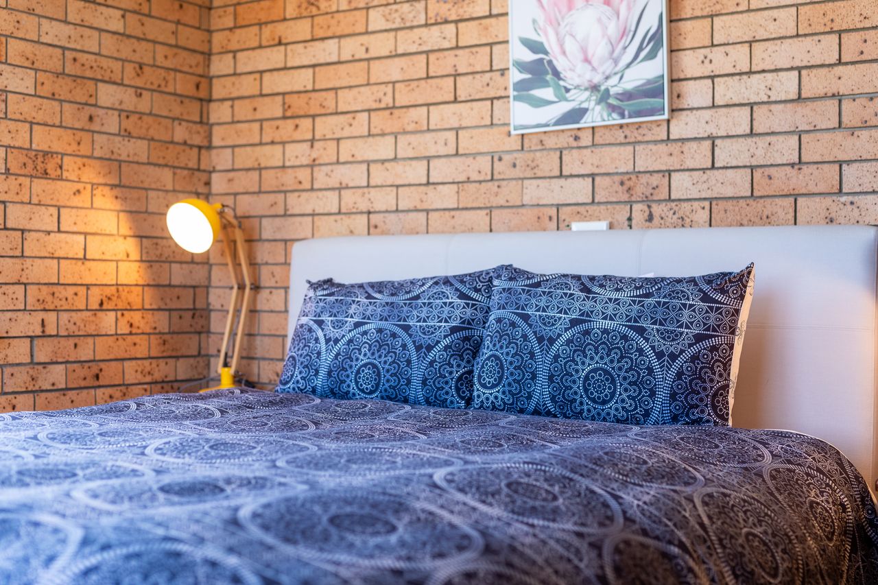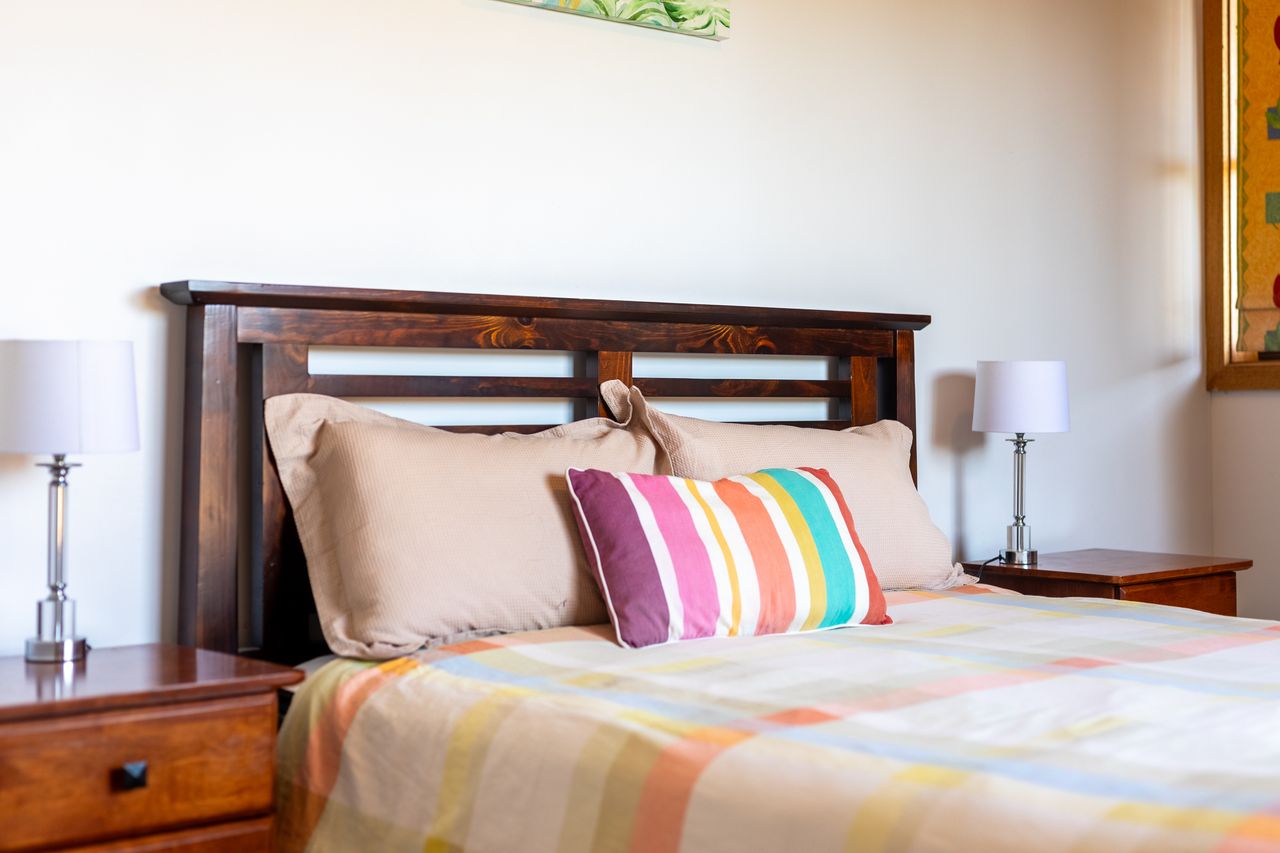 Bedroom 2 - King Bed, bedside tables & light, built-in wardrobe, pedestal fan, ironing board/iron.