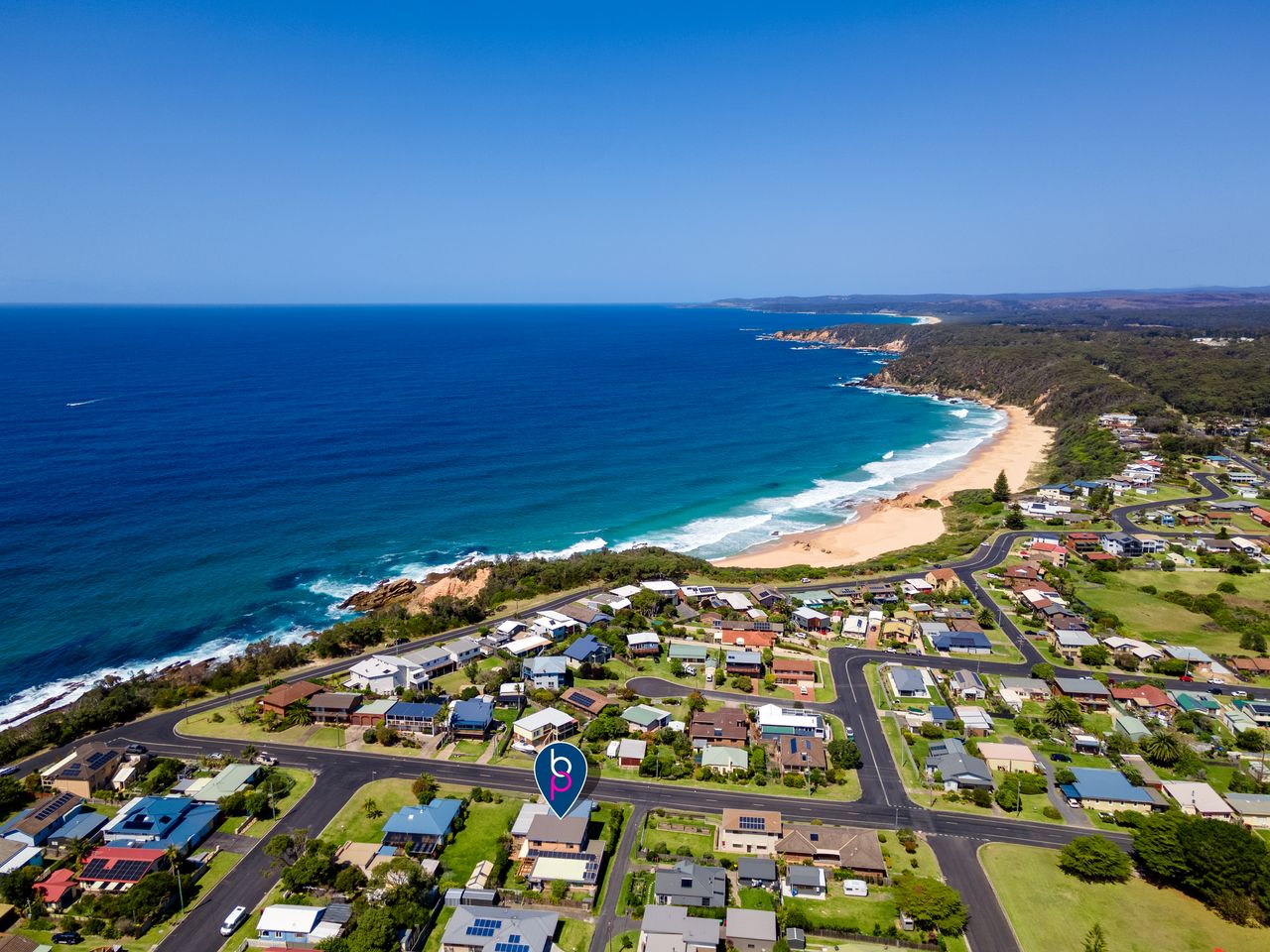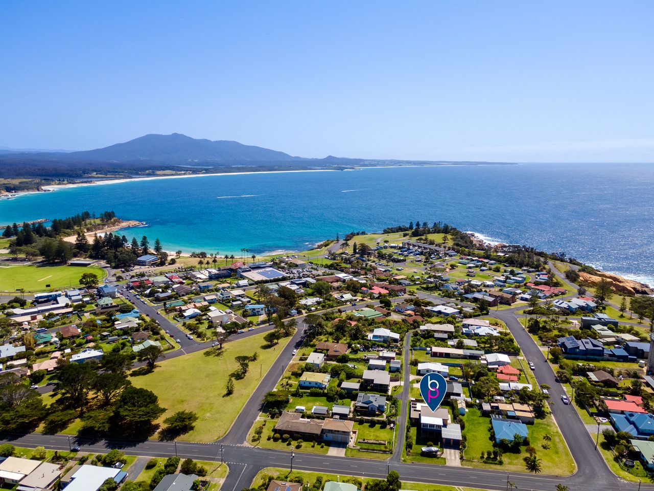 The famous Blue Pools are a mere 350m away, Beares Beach is 450m and easily visible from this perfectly situated elevated position. Horseshoe Bay Main Beach is 700m, Woolworths Supermarket is 500m and Bermagui Beach Hotel is 650m.