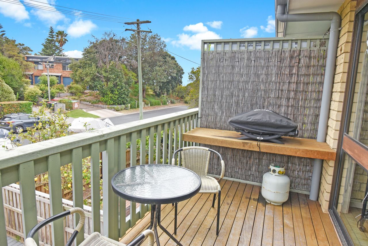 Outdoor : Small outdoor table, chairs and small Weber BBQ on the sunny balcony overlooking Narira St.