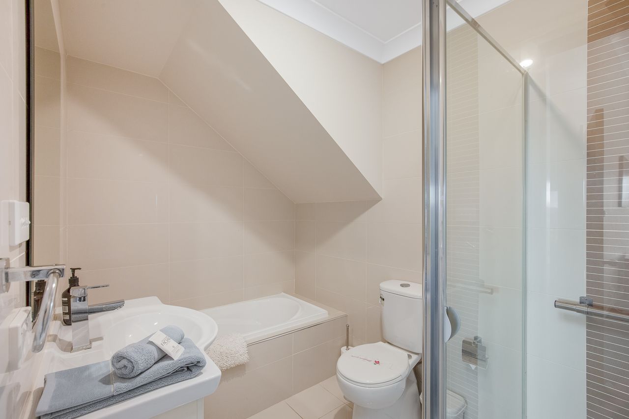 Bathroom - downstairs and has shower, vanity unit, toilet.