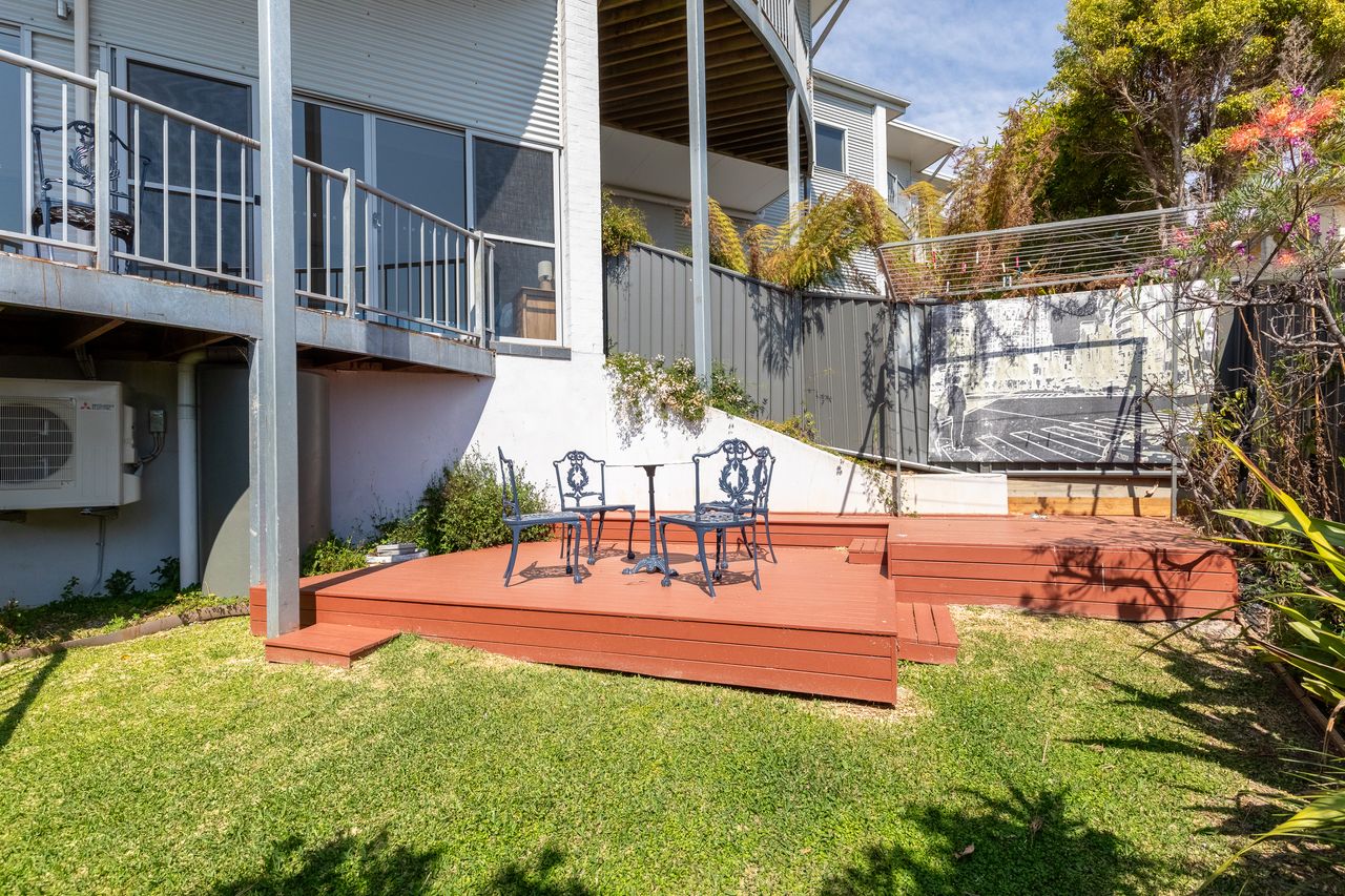 Outdoor: North facing balconies on both levels and overlook backyard with small garden, patio area and 4 seater outdoor setting. Views over the communal saltwater swimming pool. Upper level has 2 chairs and a gas BBQ.